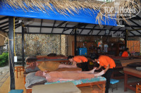 Первое утро в отеле: вчера, при заселении, нам выдали талоны на завтраки в ресторан (на каждом талоне стоит дата, № бунгало и указан «Завтрак»). Приходишь в ресторан, отдаёшь свой талон на сегодняшний день на входе и всё – дальше шведский стол с азиатским акцентом: яйцо варёное; глазунья; яйцо, обжаренное с двух сторон; рис отварной; рис с креветками; рис с различной тушёной зеленью. На другом столике: сосиски; лапша рисовая (стеклянная); лапша обычная, обжаренная; тушёные овощи; картошка тушёная с мясом (острая), овощи тушёные с мясом куры (острые). Тосты, масло, джемы, чай, кофе, молоко, арбузы и ананасы (кусочками). Соки разбавленные, вода. Соль и различные специи на отдельном столике. Читал в отзывах, что некоторые отдыхающие голодными уходили с завтрака. Интересно, а что они кушают дома на завтрак?