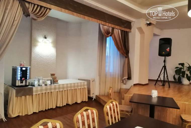 Ресторан на 5 этаже. Точнее их 2. Одно утро завтракали в одном другое в соседнем, видимо в первом арендовали под мероприятие. Антураж в ресторане очень приятный, завтраки добротные, есть стол для вегетарианцев и диабетиков.