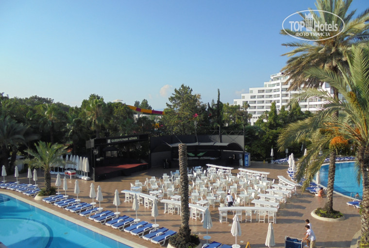1. Территория - большая, зеленая! Персонал просто молодцы! все время чистят, моют, садовники не жалея себя (и днем и ночью) ухаживают за территорией!