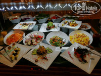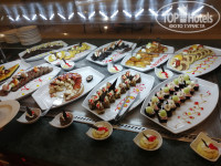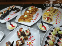 Обед и ужин:рыба, мясо, гарниры, овощи, мешанные салаты, фрукты, десерты. Спиртное местное. Часто жарили на улице гриль, курица и люля кебаб, но при этом запах горелого, не очень приятно. Но это происходит и во всех других отелях.
