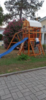 Не просто было найти в Абхазии отель для комфортного отдыха с двумя детьми. В этом плане вилла подошла идеально. Сам отель комфортный и красивый, территория и пляж ухоженны. Удобный вход в номер - номера с разных сторон здания, вход в каждый номер с улицы. То есть с соседями в коридорах не пересекаешся. В проживание входит двухразовое питание. Кухня простая, но по домашнему вкусная. В обед покушать можно тут же, не нужно искать кафе. Пляж в паре метров, оборудован зонтами, лежаками, дорожкой до моря. Чистый бассейн на территории, хорошая детская площадка. Отдыхом в отеле очень довольны.