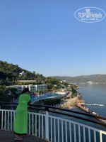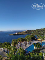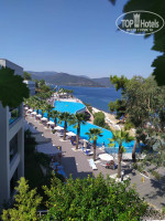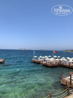 Ребята, отель класс! Но обратите внимание, что во времена карантина он считается all inclusive, не ультра. Не было морепродуктов, бейлиза, мартини и всего такого прочего. С многими людьми общались кто был в прошлом в этом же отеле. Им вообще не нравилось ничего в этом году, так как ранее было все по богатому, как говорится. Так что выбор за Вами. А нам все супер было! Вода в море божественна в сентябре, погода отличная, бассейн Инфинити покорил наши сердца полностью. Номера убирали плохо, лежаки возле моря нужно занимать рано рано. Мы выходили в 07:00 и уже мест было мало, но были. Возле бассейна можно и чуть позже прийти и найти свободное местечко. Люди практически все кладут полотенца с утра и идут по своим делам: спать дальше, кушать и тд и тп. А потом приходят. Кушать есть что: рыба, курица, рис, фри, Спагетти, очень много зелени (заправлять оливковым маслом и гранатовым соусом просто объедение), арбуз, дыня, сливы, яблоки, виноград, сладостей просто обожраться). Между основными приёмами пищи есть бублики, айран, лепешки, мороженое. Я поправилась на пару кг за 10 дней. Все вкусно. Много ступенек везде, с коляской с детками будет тяжело, но лифты спасают. Виды шикарные везде. Ездили в Бодрум, 4 лиры с человека проезд, там же брали экскурсии. Ездили в ТЦ Миттаун: ничего особенного. Мне больше понравилось Вайкики и Де-факто недалеко от автобусной станции в Бодруме. Скидки сумасшедшие. В Киеве те же вещи ровно в 2 раза дороже. Огромный плюс, что отель в 20 минутах езды от аэропорта. Рядом Риксос и ещё какой-то крутой отель. Дьюти фри в Бодруме отстой (в нем вообще ничего нет). В общем, отель советуем!