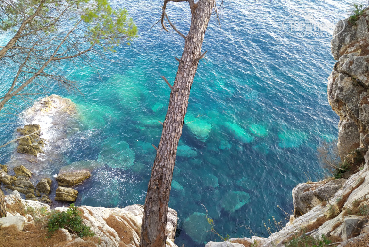 Пляж. Сначала мы расстроились, увидев фото пляжа, но тур уже выкупили. Но, к удивлению, нас все устроило. Купили тапки для купания, нашли свои любимые места, очень классные новые шезлонги, отличные чистые пушистые большие полотенца и отельные, и на пляже выдают( включено в 7 евро для гостей отеля). Позже перестали менять в отеле оранжевые, брали на пляже розовые, их не нужно носить, забирать, оставил на лежаке и ушёл. Море теплое, штормит редко, понравилось. Ходили на соседний пляж Лучице в бухту, отлично. В другую сторону- тропа здоровья, тоже класс, можно по красивой дороге с соснами и туннелями дойти до пляжа. Моя подруга с мужем только туда и ходили загорать. Нас устраивал наш пляж. Около бассейна лежаки бесплатно, тоже вариант, т.к. первая линия, не проблема сходить искупаться в море и вернуться. Бассейн с морской водой, второй крытый, с пресной, третий- лягушатник для малышей. Все отлично организовано, продумано, чисто, сервис.