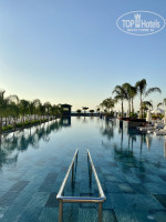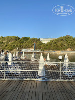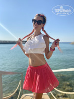 ПЛЯЖ. На пляже темный песок. Вход в море каменистый и есть ступенька, так что спускаться в море нужно осторожно. Дно наполовину камни, наполовину песок. Достаточно мелко, вечером вообще до буйков пешком можно дойти. Сам пляж маленький, лежаки стоят к друг другу очень близко, явно не 1,5 метра. Поворачиваешься с одной стороны чьи-то пятки у тебя под носом, с другой-чья-та жопа. И люди сами беспардонные, могут вещи на твой лежак положить. Одна пододвинулась ко мне вплотную и спрашивает:"Ничего, что я пододвинулась?". Ну конечно ничего, можешь на меня уже ложиться. Очень много народу на пляже, вечером вообще негде поплавать. И если хотите хорошие места, то нужно их занимать рано утром, у бассейна вообще с ночи занимают. Я уже забыла, что это такое.