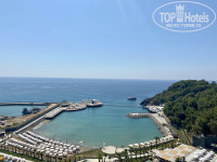Сам отель красивый, новый, номера классные, все с видом на море. Территория небольшая, нет зелени, но вся Алания такая, каменистая и не зеленая. Хороший аквапарк, как детский, так и взрослый. Большая детская площадка.