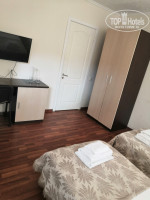 Приехали около 13.00, заселили сразу в номер "стандарт" на 3-этаже. В номере есть все необходимое, фен брали свой. Под окнами нашего номера была сушилка, гладильная доска, кулер с горячей и холодной водой. Очень удобно! В номере чистота, горничная убиралась каждый день, если мы отдыхали, то не беспокоила, заходила в другое время. Питание нормальное, почти домашнее. Все очень вкусно. Брали завтраки и ужины, порции достаточно большие, официанты стараются обслуживать очень быстро, нет никакого столпотворения в столовой. До моря 5 минут, на пляже часть лежаков под тентами муниципальные, бесплатные. Меняли Турцию на наш юг и нисколько не пожалели. Всё очень понравилось!