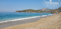 Пляж состоит из мелкой гальки. Есть платные шезлонги и зонтики, есть бесплатная зона, где можно устроиться на полотенцах. Раздевалки и душ доступны бесплатно.