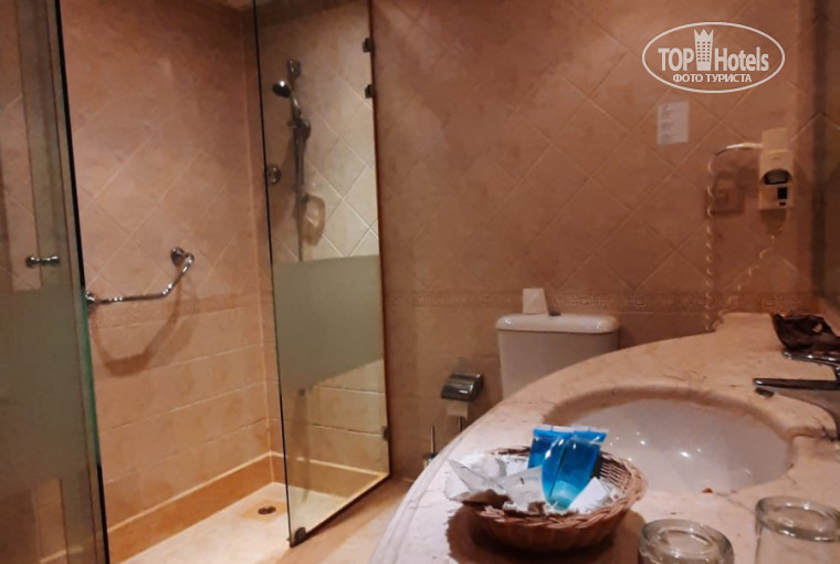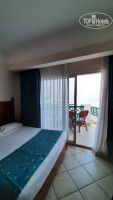 Размещение: без доплаты поселили в прекрасный номер, просторный, с коридором своим, хорошей ванной комнатой, двумя кроватями и террасой/балконом с видом на море. Уборка каждый день(полотенца, пол, в ванной натирали смесители и зеркало+++). Рядом с отелем стройка, наш номер был оочень рядом с ней. Нам это не мешало абсолютно. С утра они начинали шуметь, но мы шли на завтрак и затем на пляж.Номер не убитый, с плазмой, пару русских каналов.
