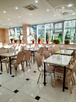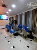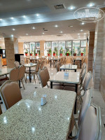 На 1м этаже небольшая кафешка, где можно выпить вкусный кофе и просторная, светлая столовая с хорошим выбором блюд и приятной ценовой политикой. Повару от меня обнимашки))), вкусно покушать - это святое))) В начале отдыха попыталась правильно питаться (кашка, яйца и тп), но мучилась не долго и сорвалась на блинчики, десерты и всю прочую вкуснятину))) – мораль сей басни такова, что голодными не уйдете не зависимо от ваших гастрономических предпочтений; выбор хороший, всегда все свежее! Исключительно моя врожденная скромность не позволила запечатлить ассортимент, но посмотрите, какой светлый и чистый зал. Единственное чего лично мне не хватало – так это зернового кофе и молока, но здесь меня выручала вышеупомянутая кафешка. Возможность оплаты картой отдельный «плюс».