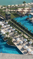 Отель впечатляет сразу, новый, красивый, современный. Очень интересный дизайн. Ресеншн на седьмом этаже, т.к. с парадного входа сразу попадаете на него. На пятом этаже и на пляже находятся a la carte. На втором этаже ресторан круглосуточный, где можно заказать пиццу, пасту, бургеры и что-то ещё, если вдруг проголодались ночью. На первом и седьмом (24/7) бары, есть хорошего качества алкоголь, коктейли делают все возможные. На третьем ресторан для завтраков, обедов и ужинов. Бары на пирсе, пляже, в бассейне, и на открытой террасе где можно и пообедать.