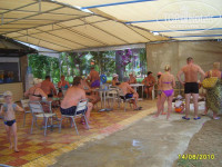 Номера: Почти все имеют вид на море, кроме 1 и 2 этажа. Мебель старая. Кровать маленькая, пружинная и жёсткая. Подушки деревянные. Светильник над кроватью не имеет плафонов и светит как раз Вам в глаза, а выключатель расположен на такой высоте что дотянуться до него можно только встав. Из шкафа воняет. Холодильник просто декорация, не работает. Вода в номере греется радиторами на крыше, т.е. не всегда есть! Рядом с унитазом стоит ёршик в который уже кто то насрал, он весь в говне, это вообще ужас был. С балкона вид на море, дорогу по которой постоянно! ездят автобусы, грузовики, легковушки, мотоциклы и т.д. с 7 утра, и бассейн. ТВ не знаю не смотрел. Кондиционер работает на отлично.