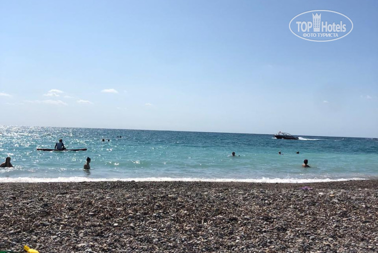 Пляж – это одно из немногих плюсов в этом отеле. Широкий песчаный. Лежаков хватает (но это возможно из-за того, что отель был заполнен только на половину). Заход в воду – галька. Я обходилась без специальной обуви, но если Вы галечку не любите, то купите коралки. На пляже есть бар, снек-бар.