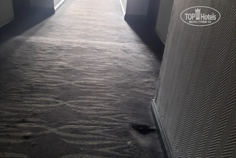 Отель очень старый, коридоры убитые, ужасный старый палас по этажам, заделаный под плинтус, то есть не съёмный, с ямами в полу. Если кто-то кинет окурок, задохнутся от горения этого паласа все.