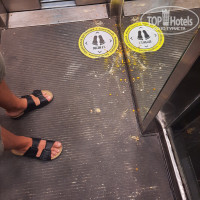 В лифтах грязно. Обращалась лично к администрации, что бы помыли лифты. Лифты стеклянные, едешь на нем и любуешься помойкой у бара, коробки, мешки с мусором, грязные швабры и тряпки. И это изо дня в день. Неужели там не поставить непрозрачную перегородку?