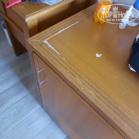 Шкаф не открывается, надо снять одну дверь, поставить рядом, тогда вы сможете положить туда вещи. Облезлый холодильник и вообще вся мебель очень старая.