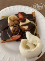 Питание очень разнообразное и хорошее, всегда была рыба, в обед красная, различное мясо, овощи, фрукты. Нас полностью удовлетворило. На территории везде что-то готовят, есть ресторан на пляже, неподалёку турецкие женщины пекут лепешки с сыром и мясом, основной ресторан, ресторан возле аква парка на второй линии, кафе. Кстати, в кафе очень вкусные вафли (типа бельгийские), готовят с фруктами, мы ещё брали шарик мороженого к ним.