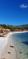 Белый не нагревающийся песок. Лежаков вагон, бежать никуда с утра не надо. На каждом лежаке полотенце. Также есть станция полотенец, можно брать сколько хочешь, особенно удобно если длинные волосы, одно на голову, одно на теле, на третьем лежишь.