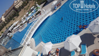 6)Бассейны. 5 Бассейнов. 1 детский,маленький,с горкой.2 с серьезными горками уже,тоже небольшой. Горки классные,работали. 3 основной,большой,глубина 1,40. вода всегда чистая,чистят бассейны ночью,кстати,чистит мужчина, который каждую ночь тихо пел песни, очень красиво на турецком. 4-5 бассейн внутри отеля,детский и взрослый.