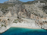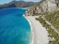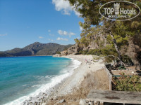 *Пешая доступность к центральной улочке, магазинам и пляжу. К общественному пляжу Belcekiz 7-10 минут спокойным шагом. На Голубой лагуне практически всегда аншлаг, поэтому предпочли Belcekiz. Море ведь такое же :) И да, у отеля своего пляжа нет. Вообще в Олюдениз, на сколько я знаю, мало отелей со своим участком пляжа и лежаками. Belcekiz длинный галечный общественный пляж - лежаки и зонты можно арендовать или же лежать на своей подстилке. Если уйти в самый конец пляжа налево, к скале - там более уединенное место. Понравилось, что в море сразу начинается глубина. Для маленьких деток конечно же больше подойдет мелкий пляж в Голубой лагуне. По поводу галечного пляжа - лучше берите с собой коралки, так точно будет удобней заходить в море. Можно конечно без них, это не проблема, но ощущения для стоп еще те))) Но как раз за счет гальки вода кристально чистая и нереально красивого цвета.