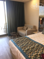 Отдыхала с мужем в октябре. Поездка запланирована была на середину октября, и к этому моменту начали ужесточать ограничительные меры, связанные с новой коронавирусной инфекцией. Чем ближе подходил отпуск, тем больше было опасений, что закроют границы.Но, всё обошлось и отпуск состоялся. Ночной рейс в 2-30 из Шереметьево, и через 3 часа мы были уже в Анталии. Нигде не измерили температуру, никакого жесткача по поводу масок, и уже в 9 утра мы были в отеле. Время в пути до отеля ровно 1 час. По приезду обработали багаж, одели браслеты и отправили на завтрак. Заселили сразу, и мы не ждали никаких 14-00. У нас была терраса лакшери, на четвертом этаже, хороший номер с видом на частный сектор. Мы уже с мужем были в отеле в Турции, который только что открылся, и нам это очень понравилось. Решили и в этот раз поехать в новый отель, и не прогадали. Кто хочет сервис, Вам сюда, а кому нужна первая береговая, и большая территория, то стоит выбрать другой отель. Отель новый, очень красивый, с нормальным количеством сотрудников, которые очень стараются и все успевают. Про еду здесь всё уже написали, это не еда , а какая то пищевая вакханалия. Рыбы какой хочешь и в любых появлениях, мороженого такое кол-во, все не перепробовали. Каждый вечер какое то новое действо вечером в ресторане.Креветки по пятницам, жареный десерт, и мороженое , которое делают специально по Вашему предпочтению и рецепту. Алкоголь круглые сутки на выбор, девочки в лобби баре большие умнички, большой Вам респект за отличный сервис, радушие и Ваше трудолюбие. Коктейлей такое количество-не перепробовать. Убирались каждый день, причём так, что мы когда бы ни пришли, всё уже было сделано. WI-FI просто огонь!!! Ловит везде абсолютно, и даже на пляже.Кто писал, что это третья береговая, так что с того? Первые 2 дня мы с мужем ходили на пляж пешком, а потом , получалось, что идем ли мы на пляж, или обратно, стоит отельная маршрутка, нужно только одеть маску. Пляж просто песня, песочек, заход хороший, и ласковая водичка. Один минус, но это к отелю не имеет никакого отношения. Народу как в Сочи, плюнуть негде. На пляже хороший ресторанчик, на обед в отель можно не ходить, здесь не перекусы, а нормальные обеды, с супчиком, десертом и выпивкой на любой вкус ( не только пиво и вино). Кто не хочет ходить на море, есть большой бассейн и 6 баров вокруг на любой вкус. Лежаков , что на море, что около бассейна хватало всем, с утра бежать и занимать ничего не надо, несмотря на полную загрузку отеля. Около отеля, если пройти буквально 5-10 минут есть рынок, там найдёте банкомат. Вечером в отеле анимация, скучно не бывает. Отель однозначно рекомендую, приехала бы сюда с дочкой и внуками. Минусов никаких не нашла, да и не занимаюсь этим никогда. Отдыхом осталась довольна, единственное, когда вечером включала телевизор, опять начинались страшилки про коронавирус. а так, бархатный сезон, а-ля пандемия, у меня прошёл в лучших отпускных традициях, чего и всем желаю!!!