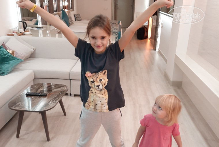 Наша поездка была спонтанной, собралась компания из 17 человек, 8 взрослых и 9 детей. Отель встретил нас гостеприимно, заселили отросительно быстро, номера большие, чистые, современные. Номер не выбирали, какой дали, нам понравилось. Наш номер с балконом выходил на дорогу и частные дома, было тихо спокойно, с балкона можно наблюдать горы. В номере были тапочки, мини бар с безалкогольными напитками- всё включено. Успели на обед: всё время отдыха кормили разнообразно и вкусно, выбор есть: есть чем детей накормить и себя побаловать. На море ходит небольшой автобус каждые 5-10 минут, ехать пару минут всего, можно и пешком дойти, если дети лучше с коляской. Пляж отличный песчаный, заход пологий для детей супер, на пляже слева есть детская площадка, справа водные развлечения. Ресторан на пляже тоже кормят вкусно и разнообразно. По поводу напитков тоже отлично есть всё, безалкогольные напитки чай, кофе зерновой, соки, вода, коктейли, платные только свежевыжатые соки. Из алкоголя пиво, виски из крана наливают, вино, текила из бутылок. Команда аниматоров отличная, говорят на разных языках, русских туристов большинство, для детей мини клуб днём и вечером мини диско всё включено, есть платная клубная мама с 19:30 до 23:00. Для взрослых каждый вечер новая программа, профессилнальные артисты, очень красивые и сложные номера, потом дискотека с актуальными русскими и мировыми хитами. Вцелом только лучшие впчатления от отдыха!