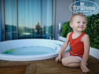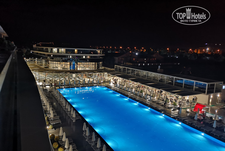 Территория - большой бассейн с глубиной примерно 160-170, детский бассейн с горками и отдельный бассейн с большими горками, как в аквапарке. Все работало отлично. Было шумно и весело.