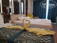 Приятности - у супруги было день рождения, но на него мы не успели улететь в Турцию, но что бы сделать сюрприз супруги списался с директором отеля - Zafer, который вошёл в положение и по его распоряжению нам на ужин подготовили столик с шампанским, тортиком, бенгальскими свечами. Так же 2 числа нам по его распоряжению повысили категорию номера до премимум с террасой и джакузи, с отличным видом на отель, вечернюю анимацию можно было наблюдать из номера. Zafer, если Вы читаете, то спасибо большое. В Турции был больше 20 раз, в том числе и приезжали на машине, но такого внимательного отношения от хозяина отеля к посетителям не встречал.