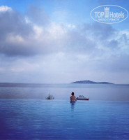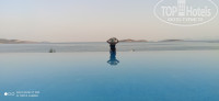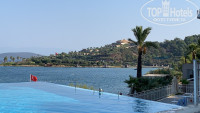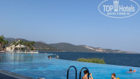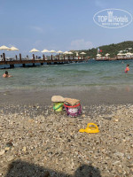 Территория большая , чистая ухоженная , вид на море и горы просто неимоверные , бассейн сливающейся с горизонтом ( готовая фотозона прям) , море в этот период было очень теплое, пляж с песочным заходом , но камни есть, кусались рыбки , с перепугу не сразу поняли что это грызет за ноги . Лежаков не так уж и много , приходилось занимать с утра , полотенца выдавали в любом количестве. менять можно было сколько угодно.