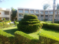 Холл у отеля самый простой, ничем не примечательный, без помпезности и роскоши. Зато территория покоряет с первого взгляда, много зелени, пальм, декоративных деревьев и кустов, цветов и цветущих кустарников, скандинавских клумб. Корпуса тоже все в зелени, за счет цветущих кустарников, растущих вертикально вдоль балконов до крыши. Над ландшафтным дизайном отель хорошо поработал. Территория небольшая, компактная, буквой U стоят корпуса, посередине U бассейны, водные горки и зелень режущая глаз, просто райский оазис посредине пустыни! Пляж небольшой, разделен на две части, активную с анимацией, где проводится зарядка, аквааэробика, йога, боча и волейбол, и спокойную. На пляже удобные, легкие пластиковые шезлонги, хорошие зонтики. Пляж чистый, каждое утро прогребается весь песок, убирается весь мусор, вытираются влажной тряпкой полочки под грибками. Хочу отметить бич-боя Abd Elrahman, который целый день трудился, как пчелка, чтобы отдыхающим было комфортно и чисто отдыхать. На пляже хорошая музыка, более активная во время анимации, спокойная и расслабляющая между анимацией. Музыка каждые 2 дня менялась и не надоедала. Заход в море в трех местах песчаный, можно заходить без кораллок, есть домашние коралловые рифы с рыбками. Интереснее кораллы, если уплыть направо, там обитает осьминожка, иногда заплывает черепаха, есть мурены и скаты и много обычных для Красного моря рыб.