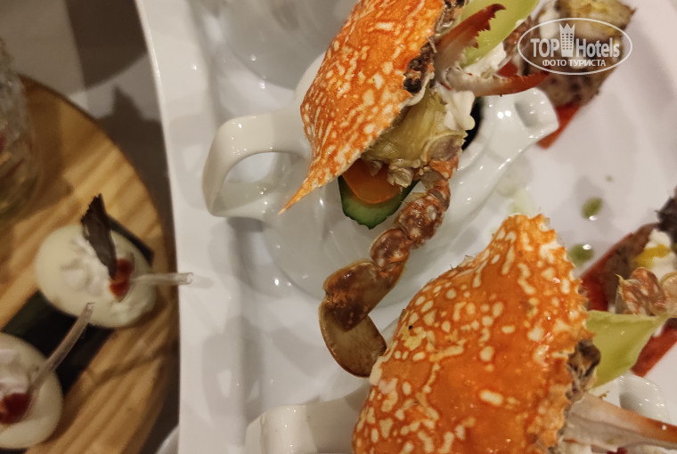 Всегда на обед и ужин по 2-3 вида мяса и 1 вид рыбы, гарниры и много зелени.Всегда 2 вида супа,кстати очень вкусные. Очень много фруктов ( дыня, гранат, яблоки, апельсины, грейпфруты, финики, хурма, клубника,бананы)