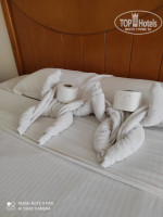 Мы приехали в отель около 12,00 нас сразу приняли одели браслеты, и заселили, без никаких доплат.Номер нас очень даже удивил,огромные удобные кровати, чистый , плазма, холодильник, сейф, сан узел, большая душевая, терасса, и...шикарный вид на море!!! Уборка была хорошая, мальчик постоянно крутил какие-то фигурки!