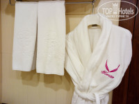 Благодарны за советы и отзывы других гостей отеля, что халаты и тапочки (обязательные для отелей 4*) выдаются по дополнительному запросу к администратору. Нам принесли через 5 минут после поселения в номер. Смотрите фото.