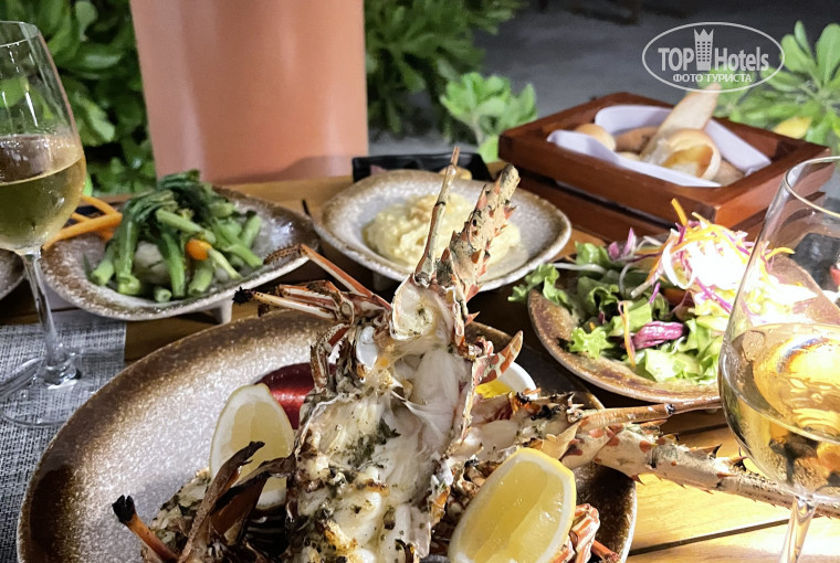 ужин с лобстером в magrib ( 900грамм 300$ ) и вином нам обошёлся в 400$.