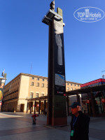 Напротив отеля остановка трамвая.