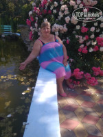 Отлично отдохнули коллективом,остались очень положительные впечатления. Во первых, очень близко до моря, мягкий пологий заход в море, песчаное дно,просторный пляж песок с ракушкой,,немного людей на пляже. Во вторых,привлекает очень ухоженная территория, вся в зелени, много роз, особенно красные, и желто- розовые кусты, и вьющихся розы. Даже инжир растёт и глициния. А сосна какая интересная. С Молодых тутовников щипали ягоды. Всякие беседки, увитые вьющими растениями, зеленые терассы, зоны отдыха со столиками и скамеечками возле каждого домика, и никто никому не мешает, все себе отдыхают. Для детей тоже есть горка, качели, домик, карусель. Много садовых фигурок радуют глаз.также отличный пруд с водопадом, орлом на вершине и настоящими кувщинками. Персонал вежливый очень старается, следит за чистотой, везде урны, косят траву. Есть мангальная зона для шашлыков. Недалеко отдельно стоящая кухня для любителей готовить, несколько газовых плит, моек, посуда, все есть, моющие чистящие средства, все предусмотрено до мелочей. Готовят мало кто, потому что в столовой разнообразный ассортимент. Ещё близко "магнит" и всякие магазинчики. Рыбку вкусную покупали, леща с икрой, камбалу, барабульку подкопченные на палочках. Номер у нас был с просторным санузлом, напор шикарный, горячая вода всегда греется сразу. Телек со всеми программами, с плитку не включали, и так было комфортно. Холодильник, чайник, все, что нужно.