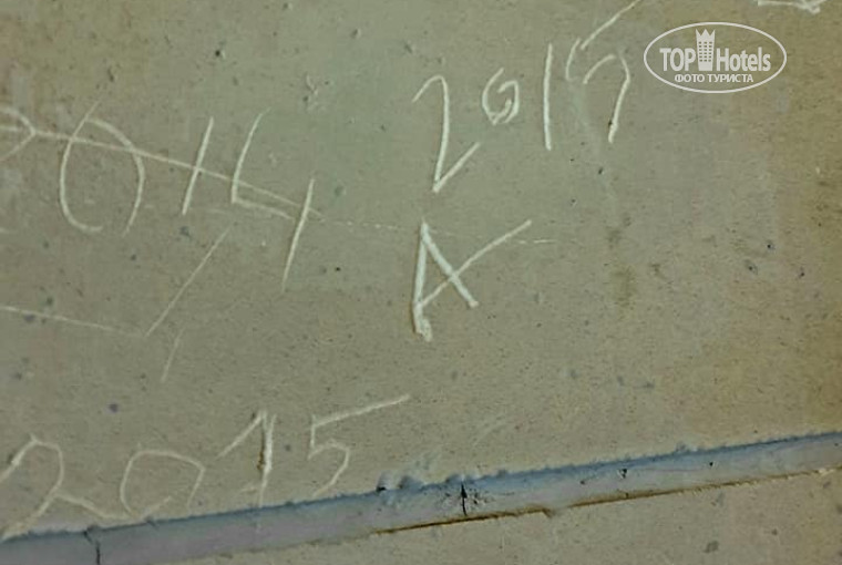 Заселили нас достаточно быстро в самый дальний корпус, в комнату 5404, в котором мы прожили 4 дня и который так и не был убран ни разу. Груды пустых бутылок на этаже, никого ни разу не напрягли.. После заселения пришлось протереть тумбочки ,так как они были облиты чем то сладким. В душе была выломана дверь и вода вытекала на пол к унитазу. Входная дверь была перекошена и очень плохо закрывалась и была такая огромная щель, ну как в деревенской сарайке, что ночью весь свет из коридора проникал в комнату и шум естественно тоже. Про ковровое покрытие с огромными пятнами я вообще молчу. Самое ужасное, плафоны в лифтах, все стены - вход в лифт в этом корпусе изрезаны петроглифами и создается впечатление, что вы находитесь где угодно, но только не 5* отеле (фото прилагается)