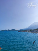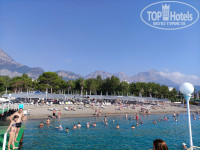 Пляж узкий, но глубокий. Лежаков всем хватает за счет того, что лежаки стоят еще и под деревьями на газоне. Искать куда лечь ни разу не приходилось. Вход в воду удобный. Есть пирс, с него туристы очень любят прыгать в воду. На пирсе есть душ, также душ есть на выходе с пляжа и возле него часто очередь. Почему бы не поставить еще один? Разочарованием стало отсутствие возможности для прогулок вдоль побережья. Отдельной прогулочной дорожки нет, а в гальке ноги вязнут. Но это проблема не отеля, а всего курорта.
