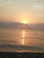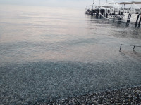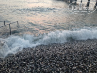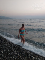 Пляж небольшой, но место на лежаке всегда находила. К морю есть спуск по мостику, до него можно дойти в шлепках, потом сразу вплавь - галька не помеха. Море от мостика глубокое (выше, чем по пояс) - как я и хотела, можно сразу плыть.