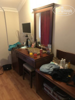 Из плюсов- неплохая мебель (не новая, но состояние неплохое), на столике лежат красивые папки с нужной инфой, в ванной стояли Баночки с шампунем (2шт), кондиционером (2шт), гелем для душа (2шт), лосьоном, 2 запечатанных мыла и 2 коробочки с шапочками для душа. 2 полотенца для рук, 2 больших полотенца для тела, одно полотенце для ног. Полотенца из номера выносить нельзя. Туалетная бумага - 2 рулона.