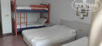 Номер нам достался очень классный(на фото) на 4 этаже, в номере двуспальная кровать, полуторка, диван и двухъярусная кровать для детей. Кондиционер очень слабый, потому что скорее всего срок его службы давно истёк, балкон вполне хороший с видом на улицу и классный отель(если бы его не было, мы бы лицезрели море). Уборке 5, каждый день убирались, хотя должны были 1 раз в 3 дня, меняли полотенца - девочки умницы!