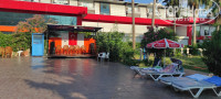 Питание, на мой взгляд, самый важный критерий оценки отеля - очень плохое - мяса нет, курица скорее всего старая, невкусная, 1 раз была говядина, 1 - баранина, остальные дни соевые котлетки и куриные печень/желудки/сердечки - всё постоянно очень острое, а т.к. ни я ни дети острое не любим, пришлось быть вегетарианцами и есть овощи. Много овощей, фруктов, сладости невкусные (такое я встречаю впервые!), много нарезки сыров, колбасы (тоже невкусная), оливки, много разных соусов. Бар - раки, пиво и вино(отвратительное и белое и красное!) Персонал умницы все! В отеле 3 бассейна, один из них с горками, включают их с 9 до 12.30 и после обеда до 16.30 примерно, горки отличные! Туалет на бассейне грязный всегда. Есть бильярд, дартс.