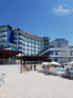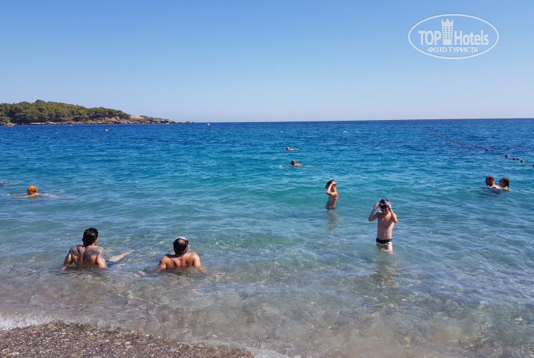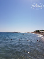 А в этом отеле: протяженность пляжа большая, можно гулять вдоль всей береговой линии (при желании). Вход в море пологий, глубина начинается не сразу. Правда не песок при входе в море, а средняя галька. И нежным ногам это больновато. Но это при входе и выходе из моря ощутимо, а в самом море по гальке ходить небольно. Я потом привыкла, и тапочки для купания не покупала. На море людей было не очень много. Особенно мы с сыном полюбили ходить на соседний пляж, где совсем мало народу было, и мы почти в одиночестве купались, что очень нам нравилось. Само море теплое, кайфовое. Сильной волны за время нашего пребывания не было. Легкая волна нежно покачивала в воде. Вода чистая. Только в дни, когда поднимался ветер посильнее, из открытого море приносило мусор, оставленный людьми с проплывающих катеров, что было очень неприятно (было такое раза 2-3 за наши 12 дней отдыха). Люди, не мусорите в море!