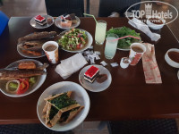 Рыбу за наши 12 дней отдыха подавали несколько раз, чередовали на гриле - в один день баранина, в другой день курица, потом говядина, и рыба. Рыба на гриле была целиковая, кажется, это была форель. Пару-тройку раз, во время обеда, т.к. мы всегда приходили к концу, уже не было мяса, всё разбирали, а оставались только блюда из субпродуктов (куриная сердце или печень с овощами). Но на ужин мясо было всегда, в любом виде. Так что ни одного дня без мяса не было. И рыба тоже была. Что тоже очень хорошо. Нам всегда всего хватало.