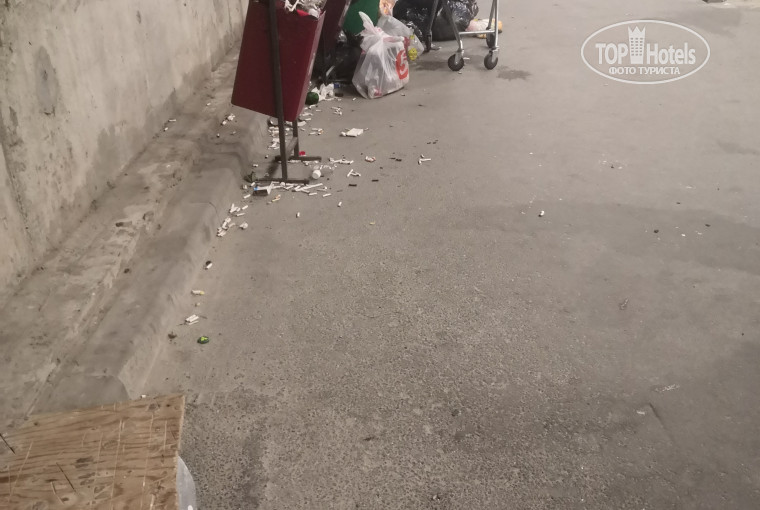 Первыми, при заезде, нас встретили переполненные мусорные баки!