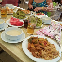 Питание и алкоголь в Турции ожидаемо "так себе". Рыба раз в неделю. Мясо без разнообразия. Выпечки нет. На фрукты арбуз и раз в неделю виноград. Поэтому, когда хотелось вкусненького, то ходили в ресторан или маркет Migros ( он в 5 минутах). Наедались в любом случае постоянно. И вино пили много (только первые 3 бокала были не вкусные) Атмосфера в баре, столовой и на ресепшене дружелюбная. Все просьбы спокойно выполняли. Никто ни разу не проявил какой-то негатив.