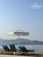 1. Море и пляж. Климат Эгейского побережья очень мягкий, море тёплое, но не горячее, скорее прохладное, с моря постоянно дует освежающий ветерок. Купаться одно удовольствие. Пляж песочный, вход в море постепенный, камней почти нет, очень комфортно. Утром море спокойное, во второй половине дня дети с удовольствием катались на волнах. А какие виды на соседние острова! Удовольствие просто! На пляже есть бар. И если в некоторых отзывах пишут, что нет, то это не так. Дело в том, что в отеле постоянно что-то строят и доделывают по ночам. Молодцы, не стоят на месте. Красивые и удобные лежаки, наслаждение для глаз.