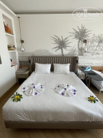 2. Номер. Мы жили в стандартном large номере К133 без вида на море, на 1 этаже, но по факту второй. Вид на бассейн. Кстати можно спустится вниз по лестнице и купаться в этом бассейне, например утром до завтрака или днём, мы так делали. В этом бассейне никого нет. Номер очень тихий. Балкон большой, санузел тоже. Все новое. Детям одинаковые очень удобные кушетки. Мини бар пополняли. Уборка хорошая. За чаевые украшали. И современные выключатели с разноуровневой подсветкой зон в номере. Прикольно. 2 дня привыкали к расположению номера и потом уже находили без проблем. Рядом магазинчик и салон красоты.