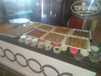 Мы вообще-то думали, что сунем на рецепции двадцаточку и нас переселят в главный корпус, но номер не прошел. В общем переехать в главкорпус можно, но через 15 баксов в день. Ну в нашем случае это 90 долларов, так что немного даже сэкономили. Номер дали кıлассный, с видом на море, возможно "по блату", так как мы уже можно сказать постоянные клиенты. Также прислали в номер тарелку фруктов и приторную шипучку под названием шампанское.
