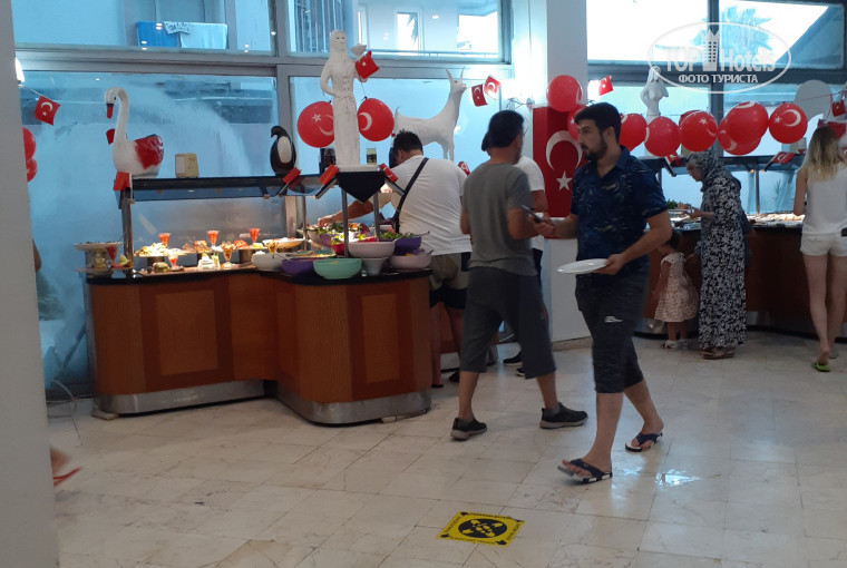Доброго времени суток.Хочу поделиться своим отзывом по поводу отдыха в данном отеле.Отдыхала в нем с дочерью 18 лет с 24.08 по 03.09.21г.По приезду в отель Юнус заселил сразу же и хочу отметить постоянную помощь и его и Османа(извини,если не правильно),ребята из Туркмении вы просто лапули,спасибо вам за все.Отель не так уж плох для 3 звезд.Позитивные ребятки в барах возле бассейна и в столовой.Не понравились грязные столы в столовой.Хочу сказать,что все старались.Шефу респект,особенно за супы,вкусняха,с дочерью объедались😋,гриль-овощи тоже высший класс.Мяса маловато,но все,что давали шеф старался на ура,нет вопросов.Анимации нет,вообще.Ходит недоразумение и предлагает дискач,который,к слову сказать,бесплатный в Турции,каждому по 5 доллоров.Не ведитесь,разводилово и отстой.У него % от этой стоимости.Вся его работа,если можно ее назвать таковой,сводится к втюхиванию дискотек,музыкальное сопровождение у бассейна после 14-00 и дискотека с детьми по одному и тому же сценарию каждый день.Отстой в общем.Море суперское,чистое,берюзовое,только лучше заходить с пирса,там сидит мачо со списком Наташ😁,выловит,если что.Лежаки грязные и поломанные.Номер достался норм,1016,даже закрывалась дверь на балкон,везуха ваще.Вернусь ли я еще сюда-нет,заплатила из Минска 1000 евро,своих денег не стоит.