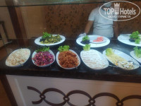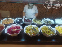 Завтрак это яйца в разных видах вареные,омлет,микс, оладьи, ,картошка запеченая,овощи ,сосиски и ветчина (есть невозможно),сыры,в основном россольные,зелень,оливки и маслины,фрукты 5-6 видов,сухие завтраки,джемы и повидло,хлопья и печенье.Сок 4 вида, кофемашина в ресторане и на улице ,чай. В обед всякое мясо с разными гарнирами(макароны,картошка, рис,)рыба,супы пюре в основном.Масса всяких вкусных десертов,фрукты (яблоки,апельсины,виноград,арбузы,дыни) На ужин каждый день что то жарят на гриле,один раз в неделю рыбу,в основном мясо,чаще курица.Есть на обед и ужин пицца которую они сами делают, но она не очень наполнена ингредиентами